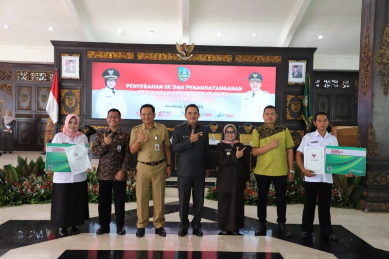 “Dari 890 peserta yang dinyatakan lulus Pegawai Pemerintah Dengan Perjanjian Kontrak (PPPK) di Kabupaten Jombang, terdapat 8 orang mengundurkan diri dan 1 orang meninggal dunia. Sehingga pada Senin 3 Juli 2023, total 881 orang calon PPPK Jabatan Fungsional Guru yang menandatangani perjanjian kerja dan menerima SK pengangkatan sebagai PPPK Jabatan Fungsional Guru lingkup pemerintah Kabupaten Jombang”, tutur Bambang Suntowo Kepala BPSDM Kabupaten Jombang dalam laporannya.