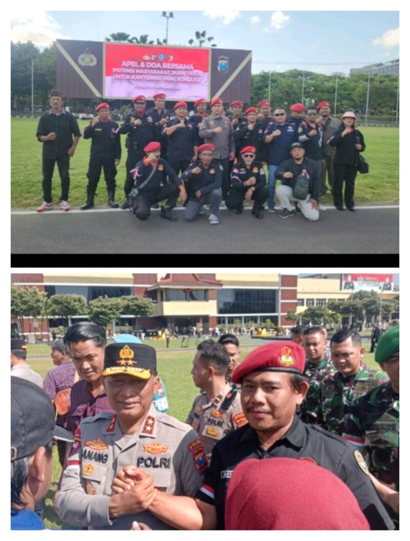 Surabaya, Garda 21– Dalam suasana penuh semangat, Purba laksana sebagai Makowil Jawa Timur memimpin 30 anggota Patriot Garuda Nusantara (PGN) dalam apel yang diselenggarakan oleh Polda Jawa Timur. Acara tersebut berlangsung di Lapangan Polda, Jl Ayani Surabaya, dan dihadiri oleh berbagai elemen masyarakat, termasuk Polri, TNI, serta tokoh agama dan masyarakat.